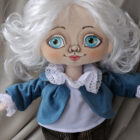 The doll's body is made of calico (100% cotton) and filled with padding polyester and hollowfiber, which does not contain formaldehyde and other harmful reagents. Material certified according to Eco-Tex Standard 100, recommended for use in production for children. Synthetic doll hair glued using hot silicone. The clothes are made from new fabrics - mixed fabric/wool/polyester/viscose/cotton with durable color. The face is painted manually with acrylic paints for fabric and tinted with dry pastel. Eyes covered by transparent varnish; painting is safe when contact with the human body.